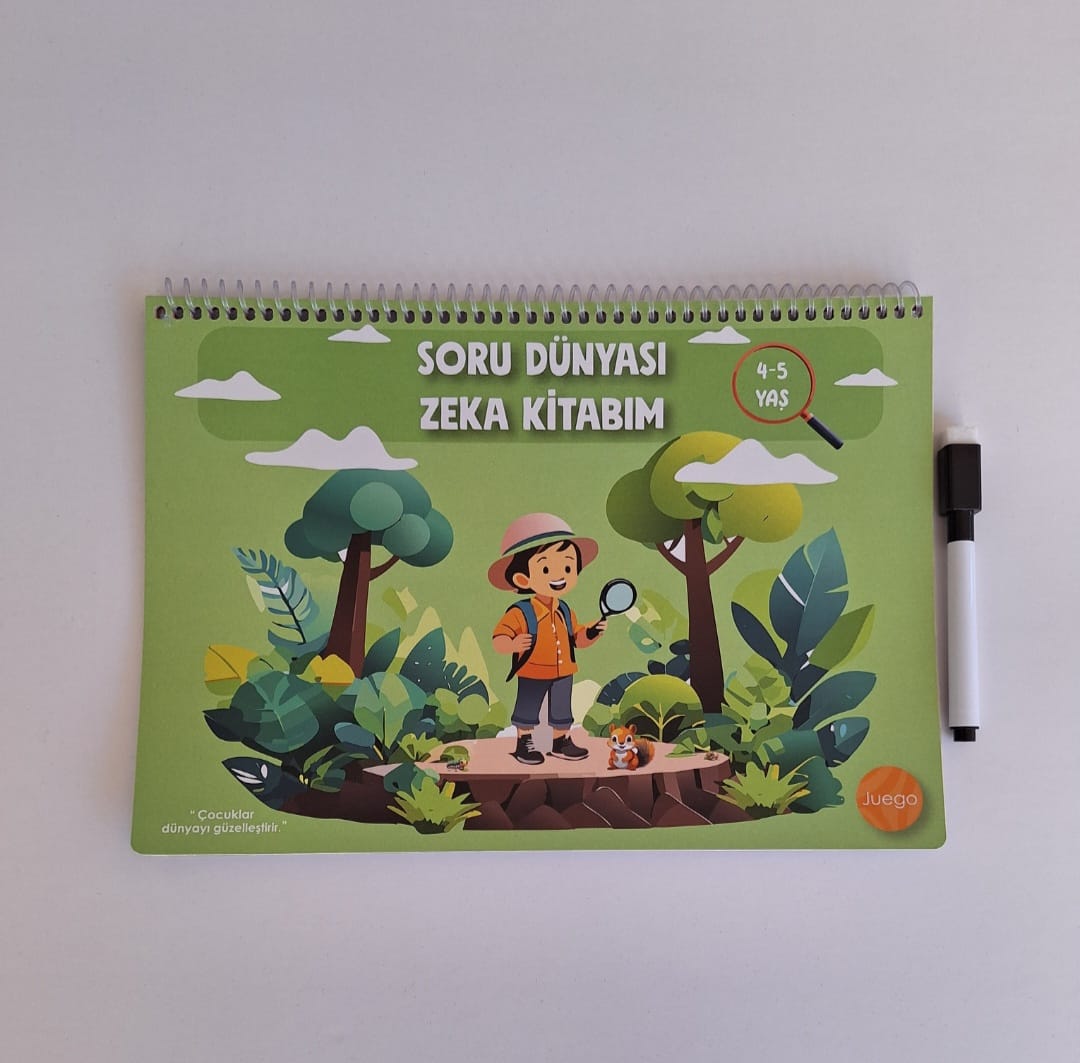 Soru Dünyası – Zeka Kitabım, 4-5 yaş aralığındaki çocukların zeka gelişimini, dikkat becerilerini ve görsel algılarını geliştirmek için hazırlanmış eğlenceli ve öğretici bir kitapçık setidir.